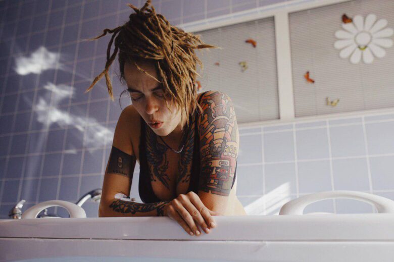 Я заметила, что ощущения на схватках усилились, и я решила попробовать ванну. Сначала лезть в воду не хотелось, но я сделала небольшое усилие, и вообще ни разу не пожалела об этом. Схватки в ванной проживались великолепно, я меняла позы, дышала. В какой-то момент из моего выдоха «вввввввввввввв» мне захотелось перейти на другой звук, я начала постанывать, и Арина сказала мне: «Пой оооооооооооооом низким голосом».